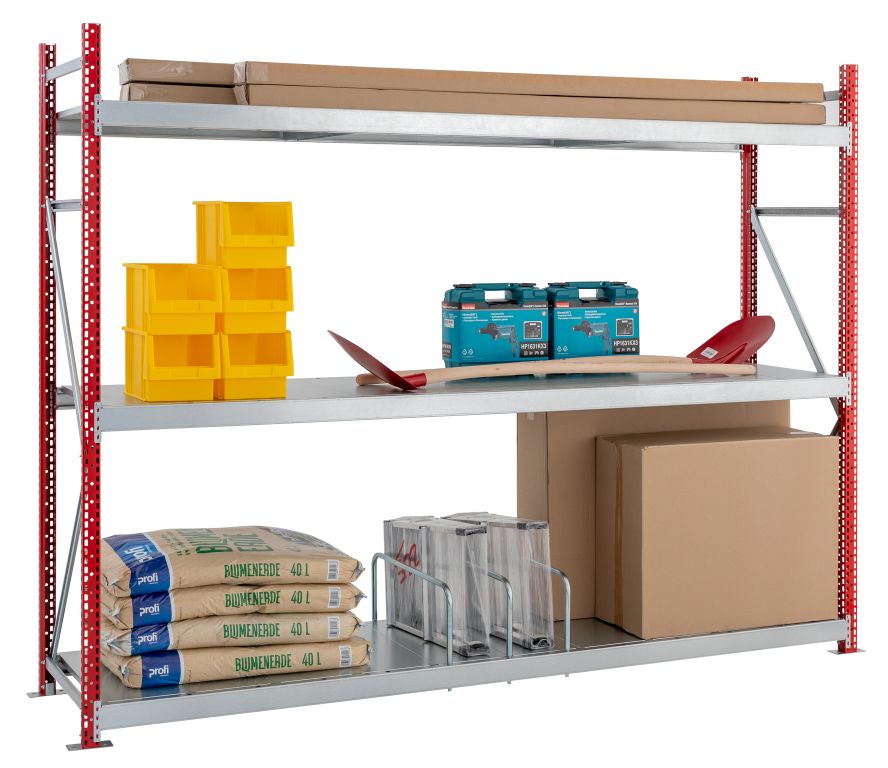 Wenn großvolumige, sperrige oder schwere Güter manuell eingelagert werden sollen, bieten Weitspannregale von SCHULTE die ideale Lösung. Sie verbinden hohe Tragfähigkeit mit großzügigen Spannweiten und ermöglichen so eine effiziente Lagerung auf kompaktem Raum – ganz ohne den Einsatz von Fördertechnik. Je nach Ausführung sind Spannweiten von bis zu 2,5 Metern und Regalhöhen bis 7,5 Meter realisierbar.